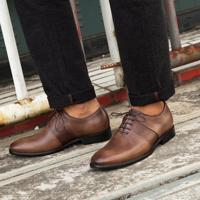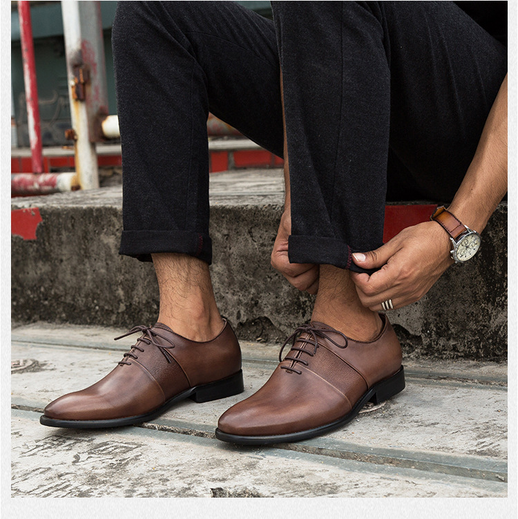 Giày da nam công sở thắt dây GD011 mũi nhọn